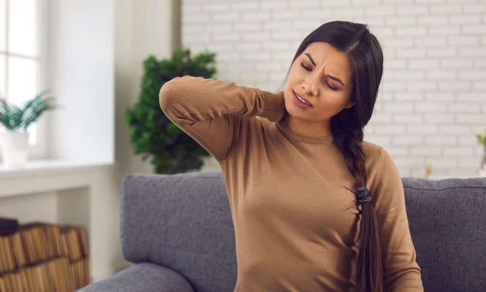A pinched nerve can also lead to radiating pain but is typically more localized around the spine, with less intense radiation. A common indication of a pinched nerve is sharp pain, burning, or a “pins and needles” sensation localized around the back and neck regions.